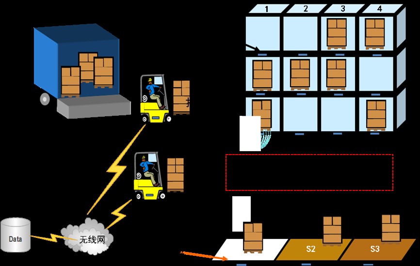 u  当货物存放货物并不是由系统指定,而是由叉车车决定货物的存储货位时,通过RFID叉车可以将实时存储信息提交到主机系统,相对传统方案的手工记录而后录入电脑的方案,库存的实时性和准确性有很大的提高,效率也得到很大提升。