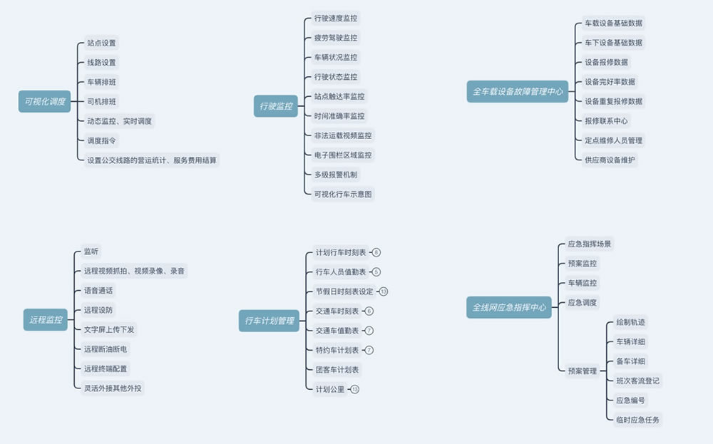 公交监控调度中心平台是智能公交系统的神经中枢,实时接收智能车载终端上传的的车辆位置信息、营运信息、事件信息、短消息信息、进出站信息等公交业务类数据和信息,利用公交线路直线示意图和GIS地图技术能够实时了解公交车辆的实时位置信息,实时监控每条线路、每辆公共车的运行状态,并能够下发调度指令、排班计划、短消息内容等。