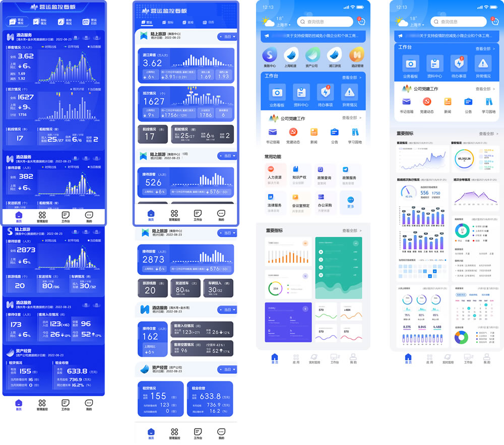 指挥调度大屏、监控工作台、移动业务处理、运营监控看板、个人工作台等